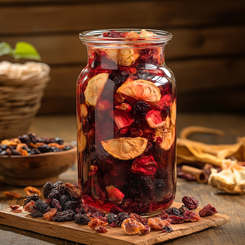Uzvar is a Ukrainian dried fruit drink, made by steeping dried apples, pears, and prunes in hot water for a naturally sweet, rich, and slightly smoky taste. A traditional beverage enjoyed year-round.